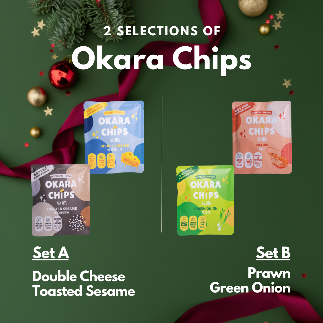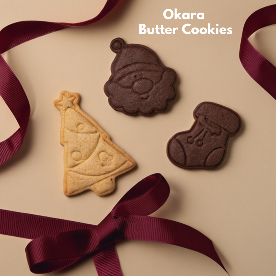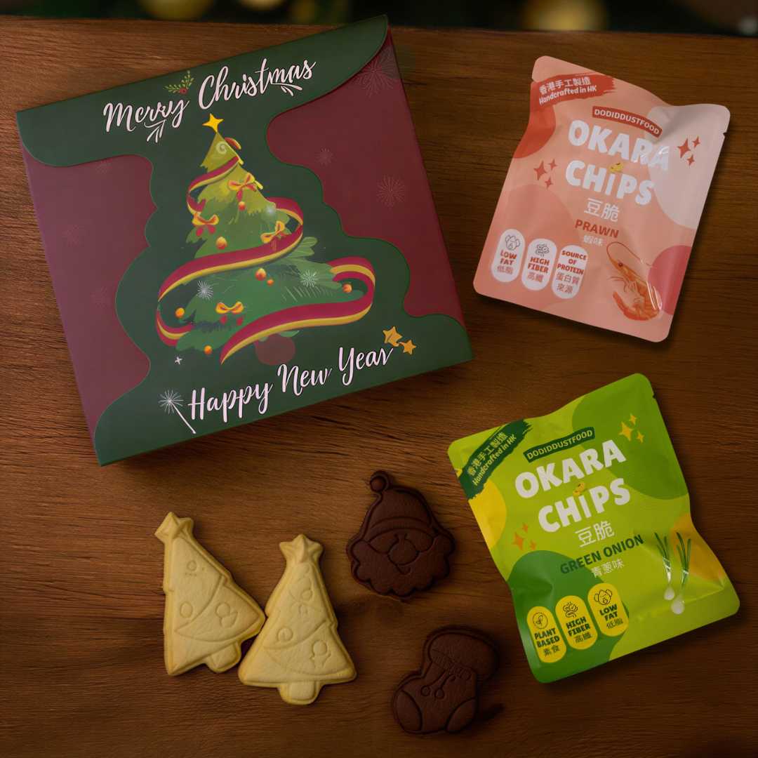 這個聖誕,我們與社企星星堂 Angelchild 攜手合作,以本地大豆渣升級再造,帶來期間限定暖心禮盒,每一口都是對地球的守護,也是送給親友的純淨祝福。 每個禮盒包含: • 聖誕樹豆渣牛油曲奇(原味):2塊 • 聖誕襪豆渣牛油曲奇(朱古力味):1塊 • 聖誕老人豆渣牛油曲奇(朱古力味):1塊 • 豆脆(輕量裝 23g) :共2包 可選口味組合: A - 雙重芝士及黑白芝麻各1包 或 B - 蝦味及青蔥味各1包 This Christmas, we join hands with social enterprise Angelchild to transform upcycled okara into a limited‑edition warmhearted gift box. Every bite is a gesture of care for the planet, and a pure blessing for your loved ones. Each gift box includes: • Christmas Tree Okara Butter Cookies (Original flavor): 2 pieces • Christmas Stocking Okara Butter Cookies (Chocolate flavor): 1 piece • Santa Claus Okara Butter Cookies (Chocolate flavor): 1 piece • Okara Chips (Light Pack, 23g): 2 packs Choice of flavor combinations: A – Double Cheese and Toasted Sesame (1 pack each) OR B – Prawn and Green Onion (1 pack each)